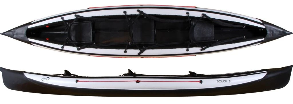 De Scubi 3 van Nortik is bedoeld voor recreatief gebruik. De Nortik hybride technologie verenigt de voordelen van opblaasbare kano’s en vouwkano’s. Dus snel op te blazen en verstevigd met een frame om betere vaareigenschappen te krijgen. Met drie zitplaatsenis de Scubi 3 de grootse kano van de Scubi -familie. De opbouwtijd van de kano is circa 15 minuten.